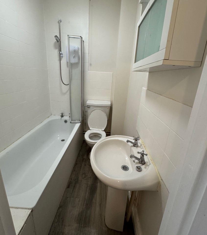 The bathroom has a bath and shower. The flat is all electric with modern high heat retention storage E7 heaters